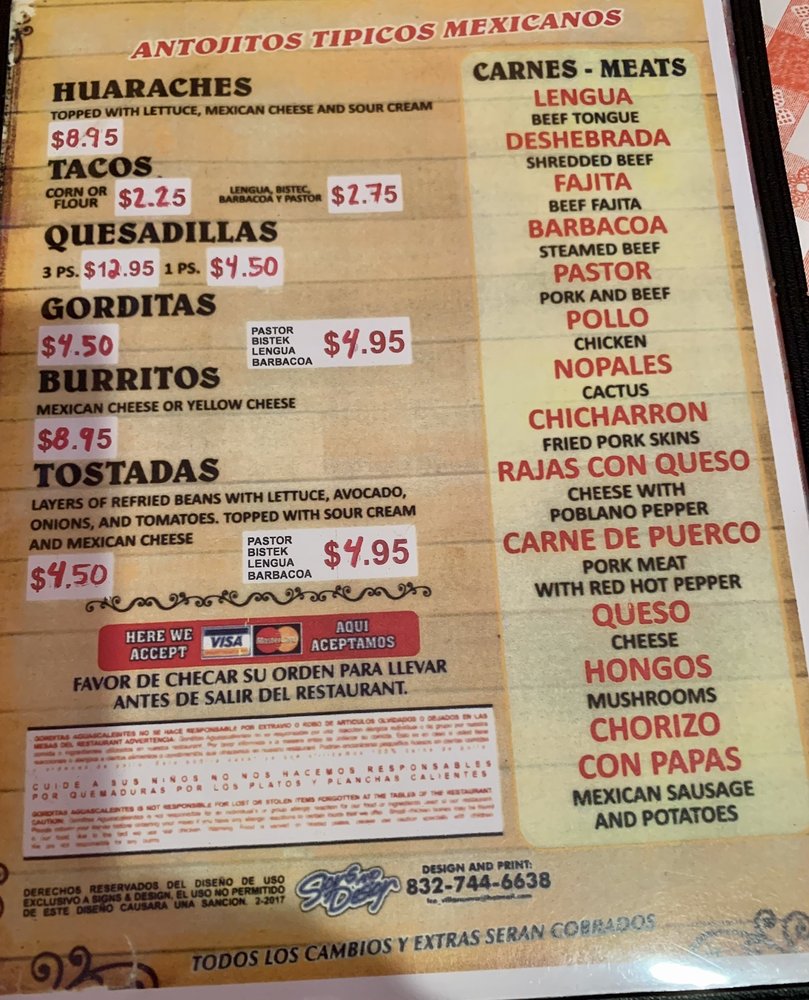 Gorditas Aguascalientes Menu